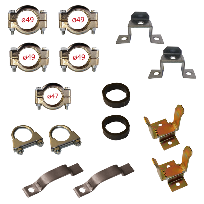 - 4 colliers d’échappement avant Ø49 qualité premium.